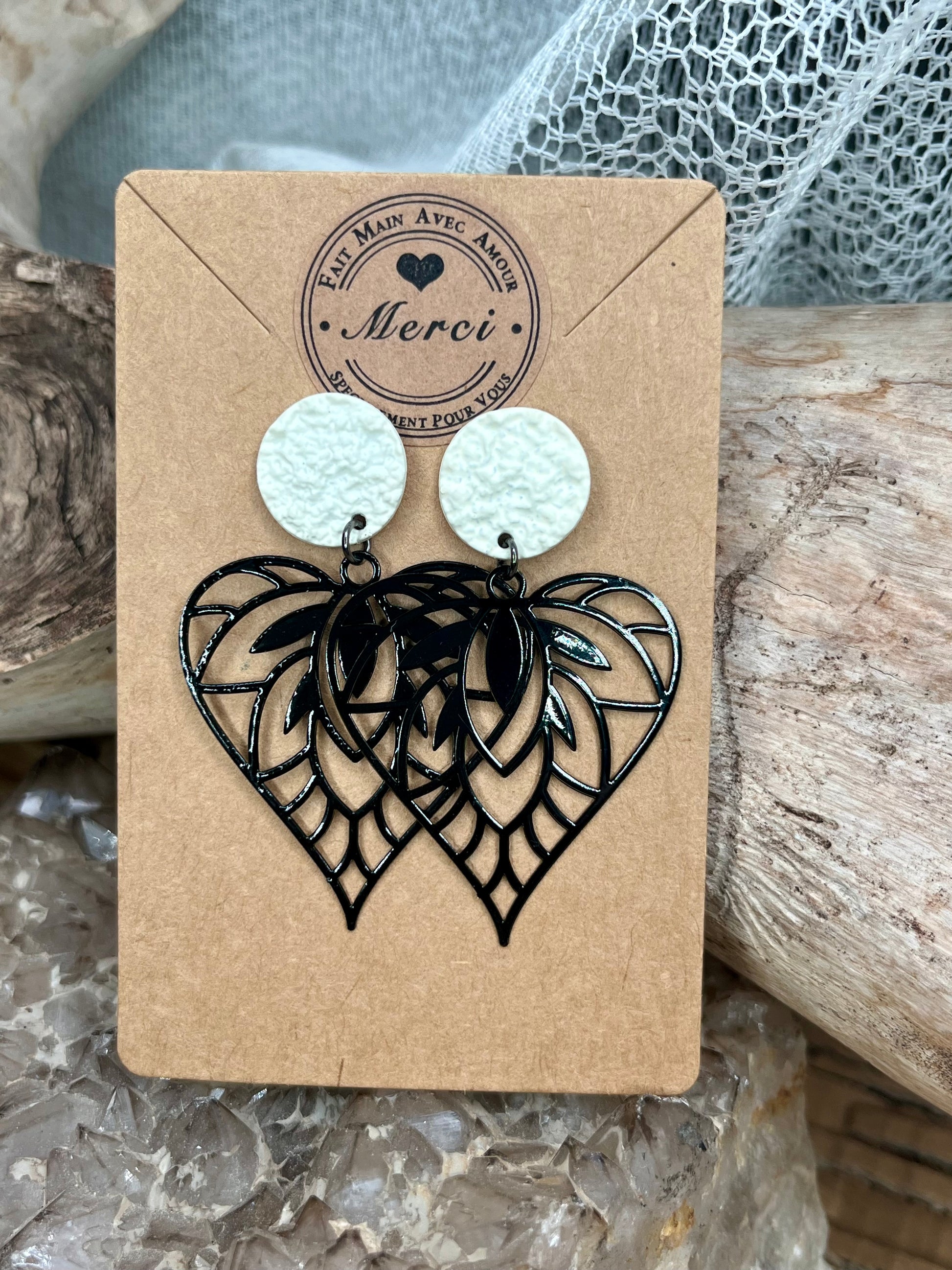 Boucles d’oreilles en acier inoxydable noir et résine blanche