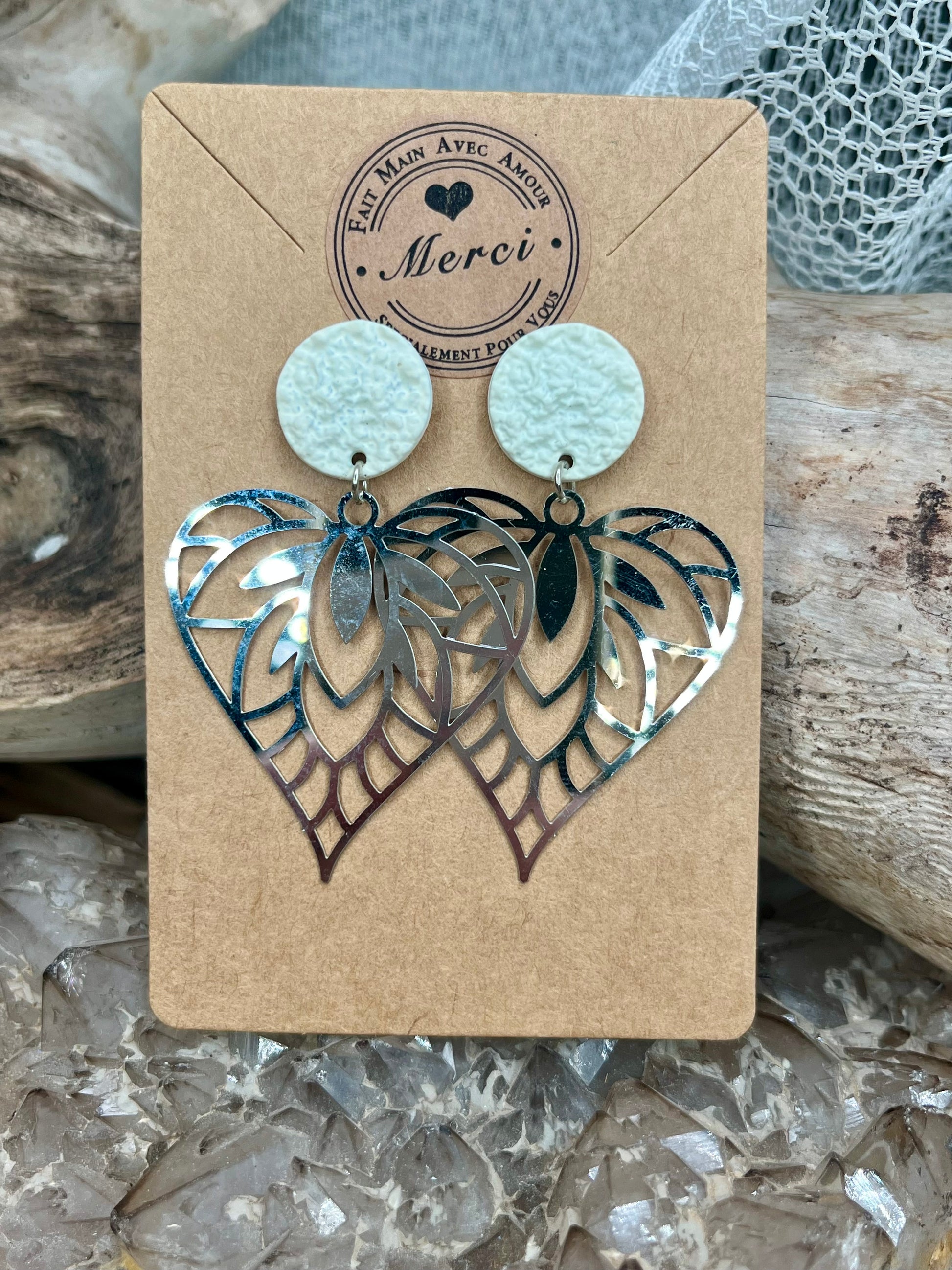 Boucles d’oreilles argentées en acier inoxydable et résine blanche