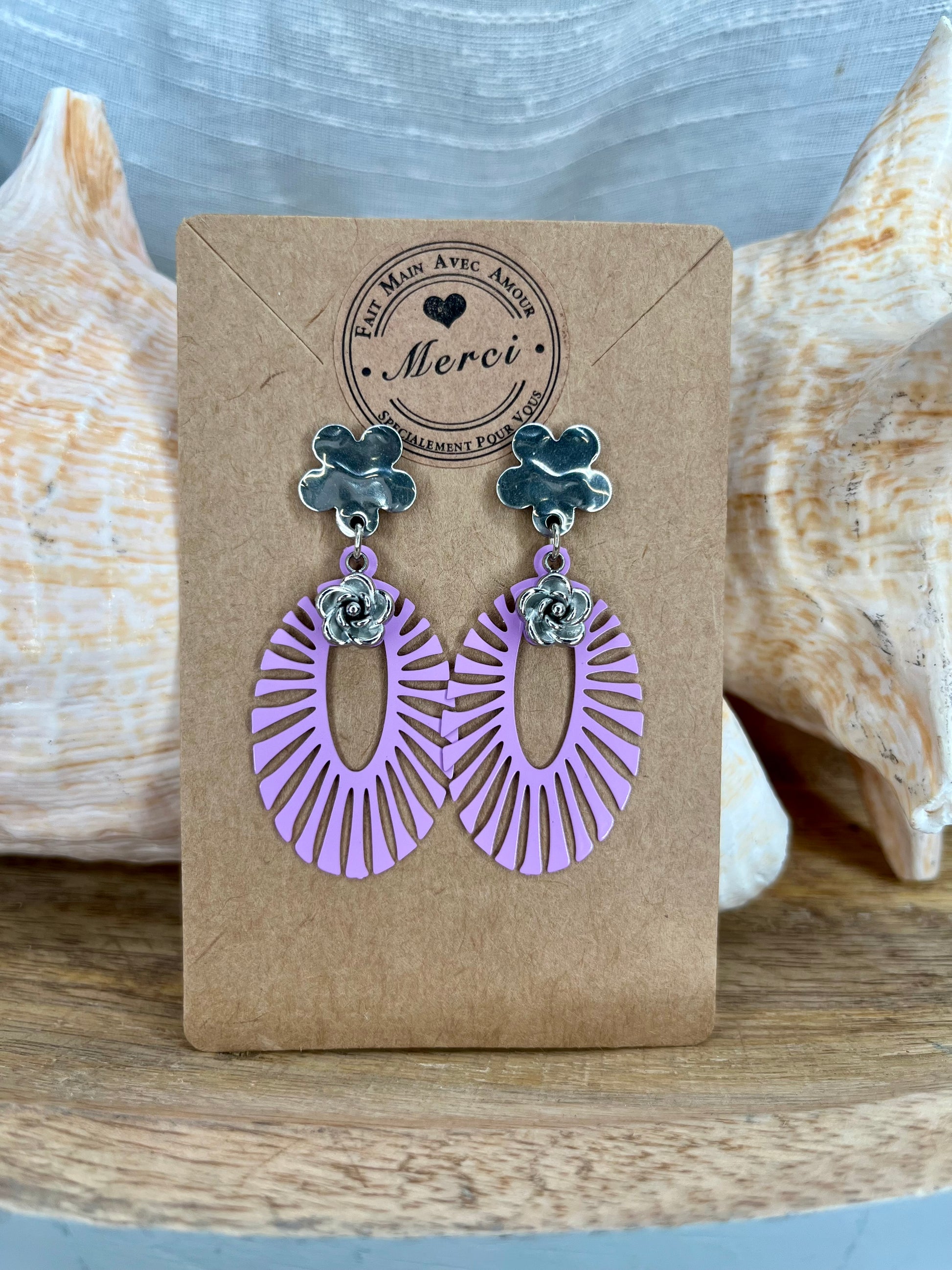 Boucles d’oreilles argentées et mauves en acier inoxydable