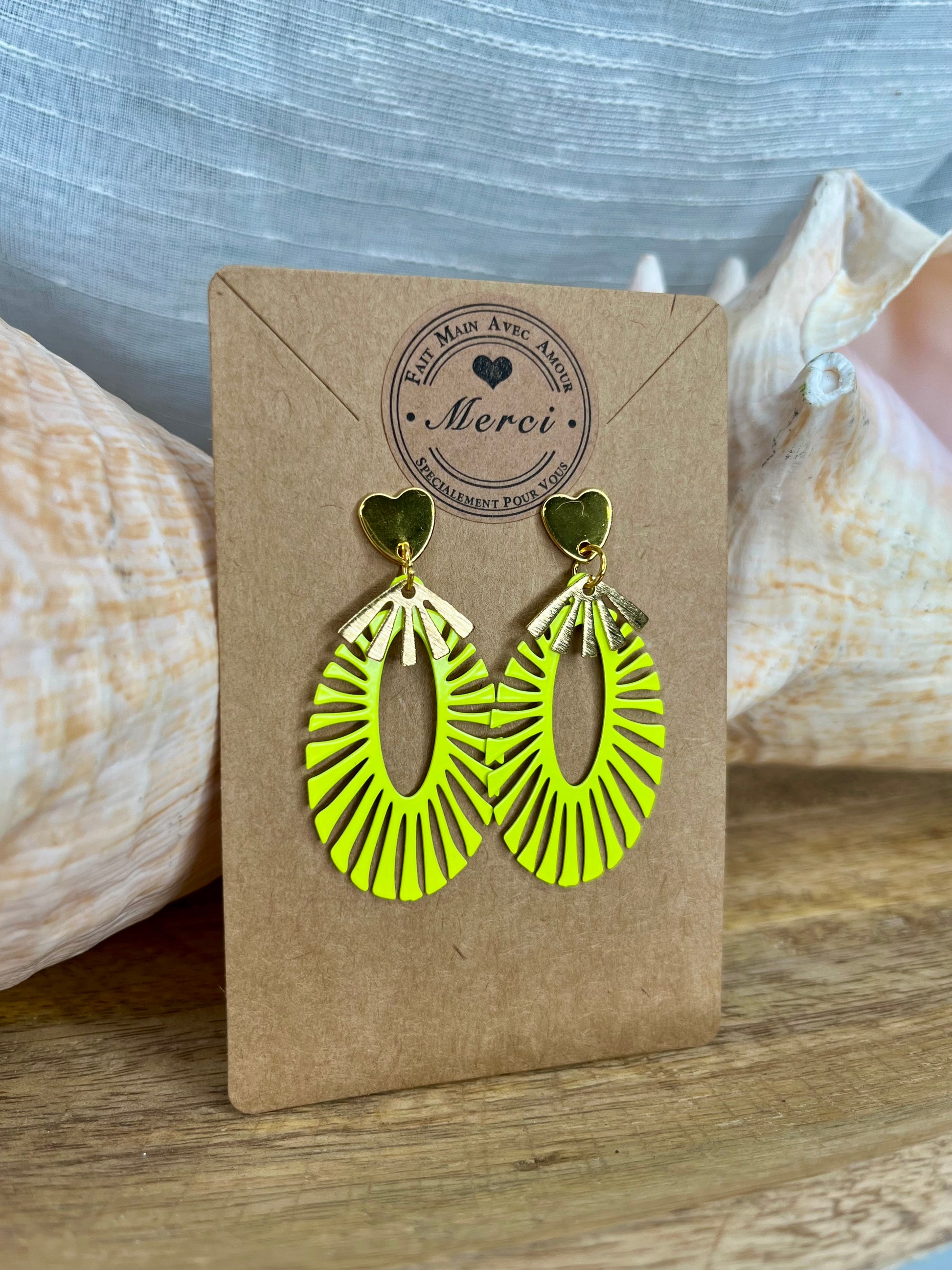 Boucles d’oreilles dorées et jaunes fluo