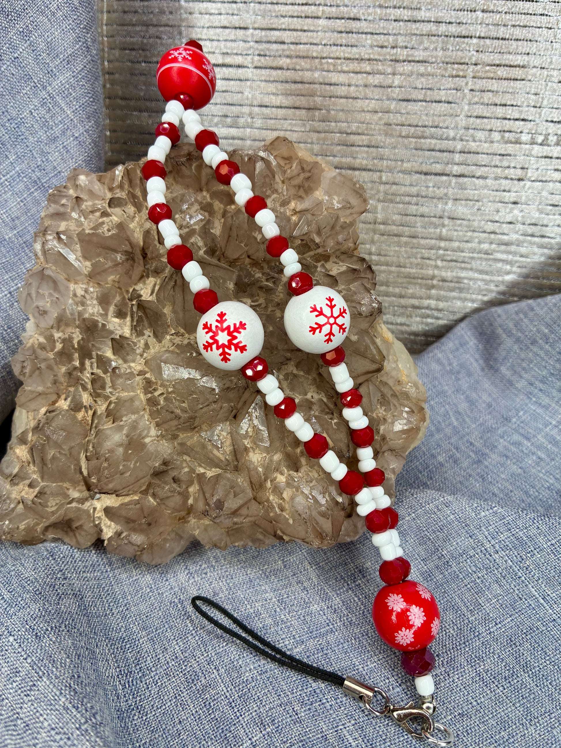 Cordon de téléphone perles en verre et bois thème Noël 🎄