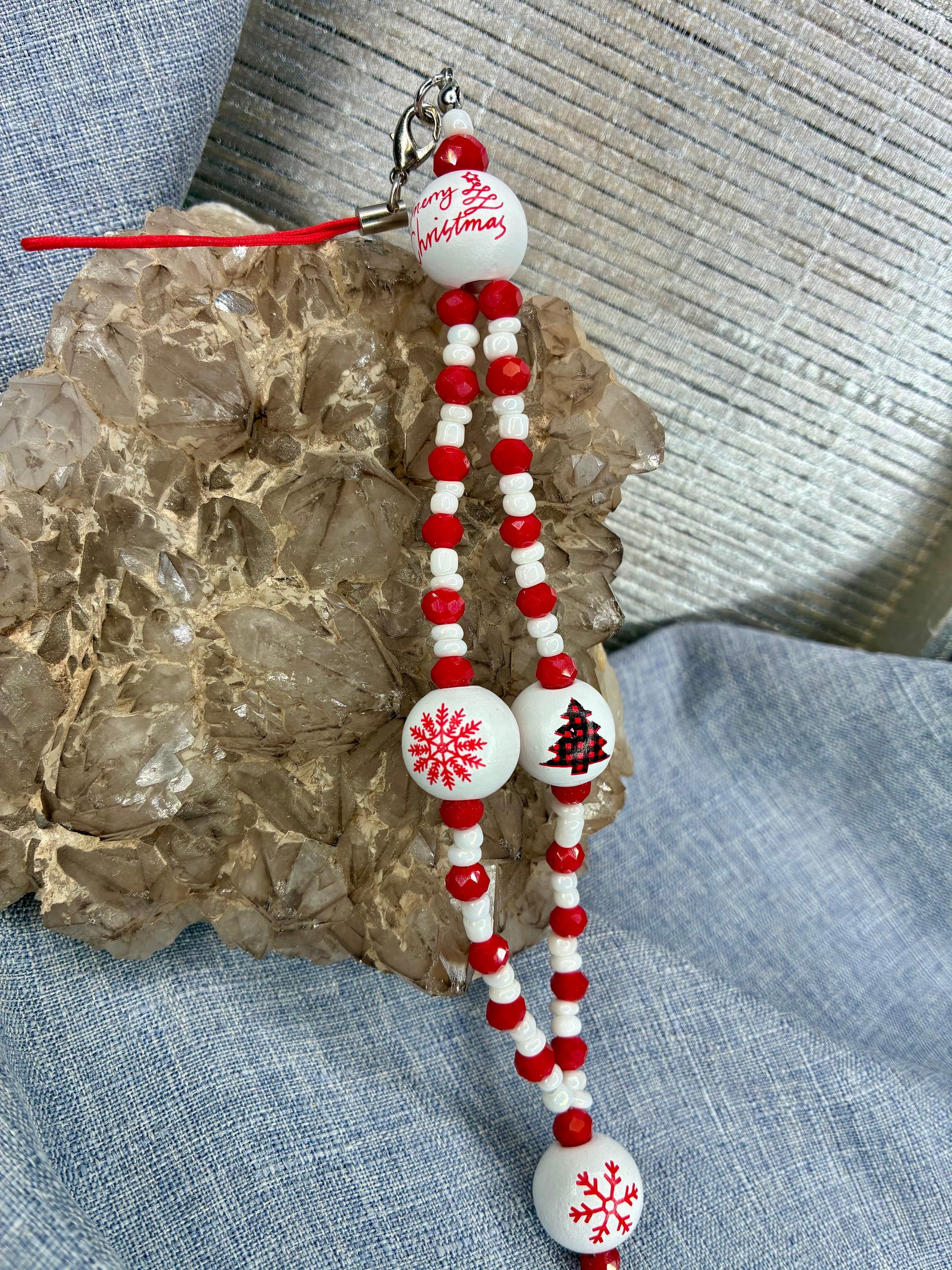 Cordon de téléphone perles en bois et verre thème Noël 🎄
