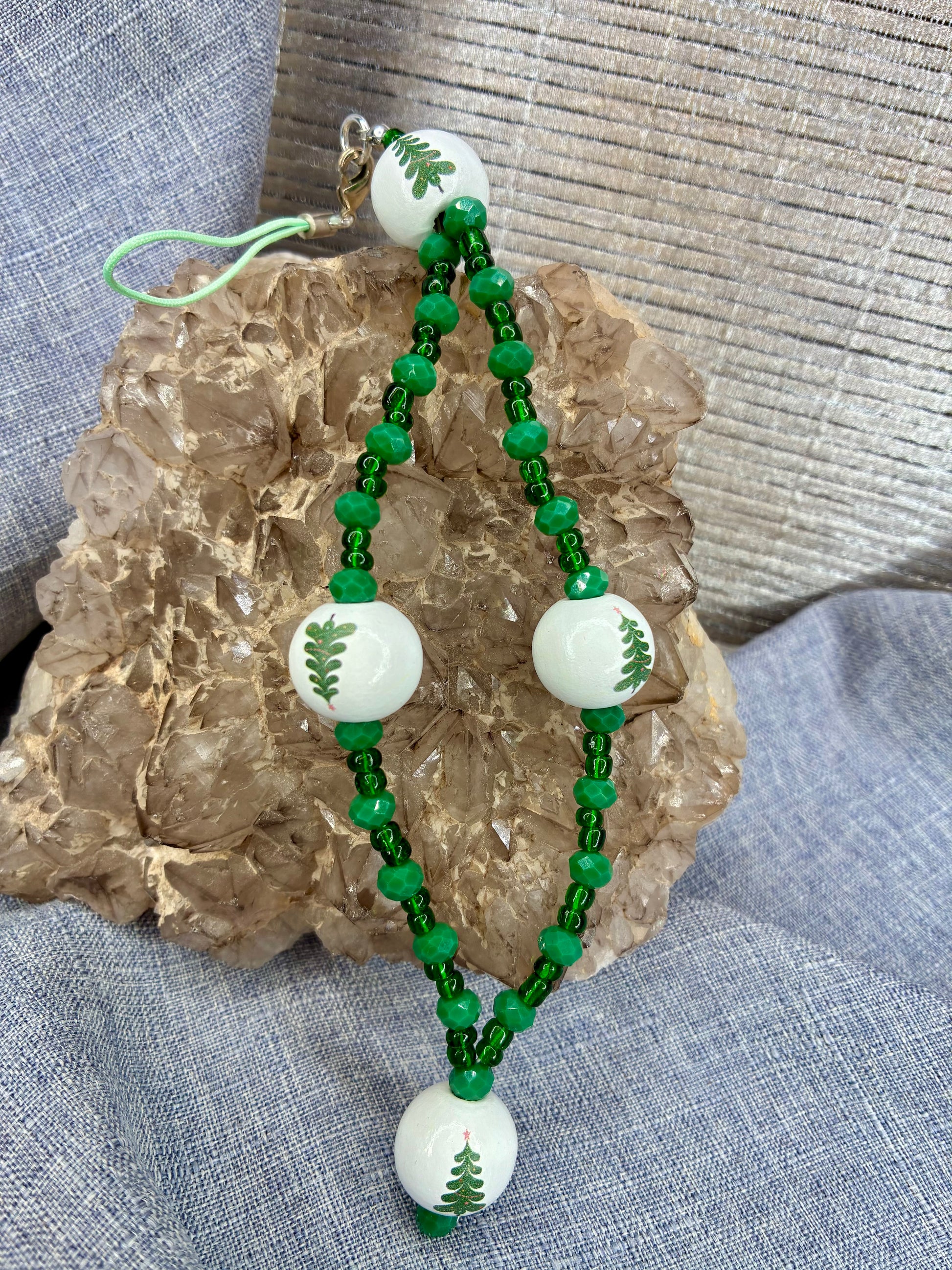 Cordon de téléphone perles en bois et verre thème de Noël 🎄