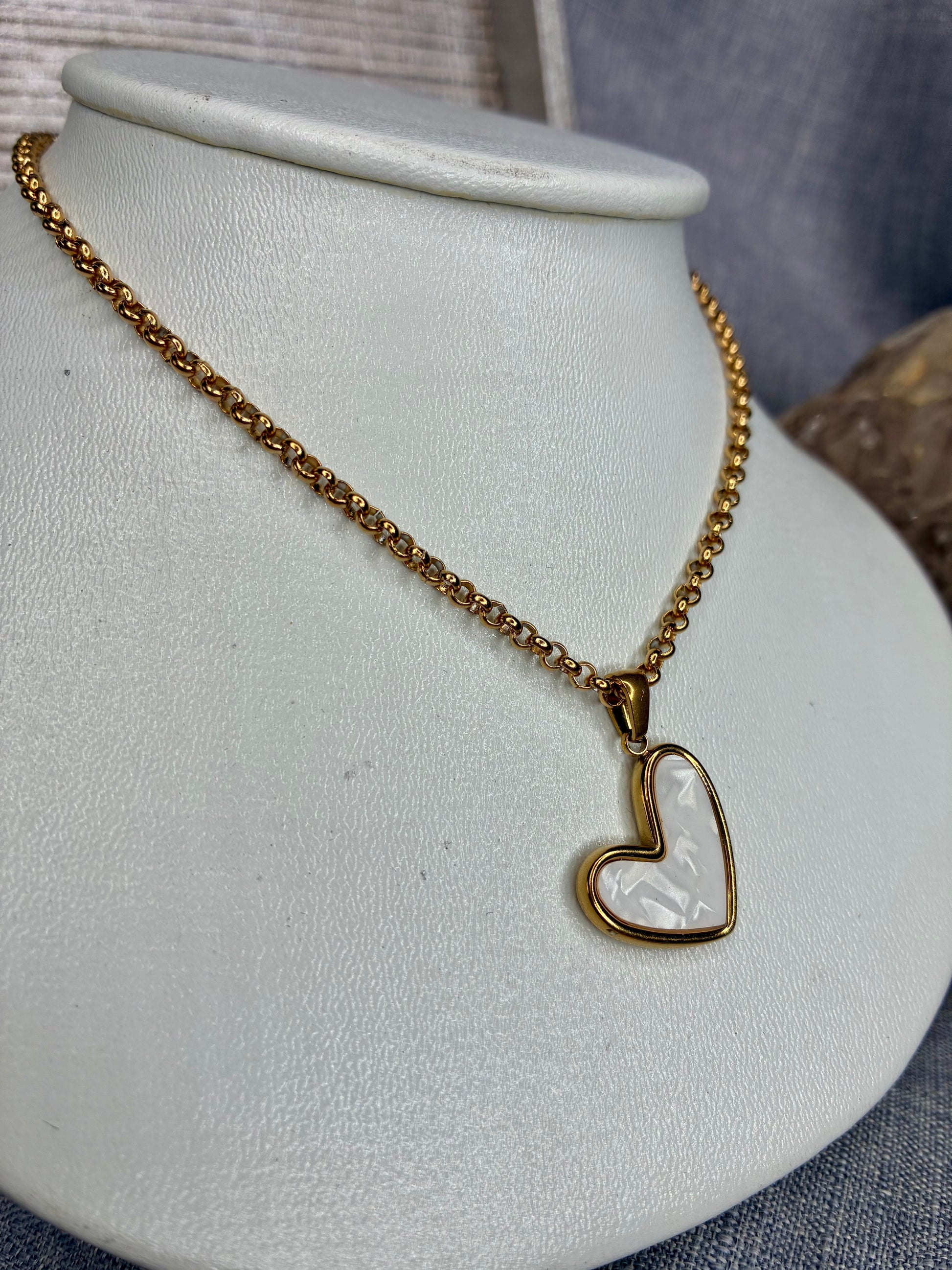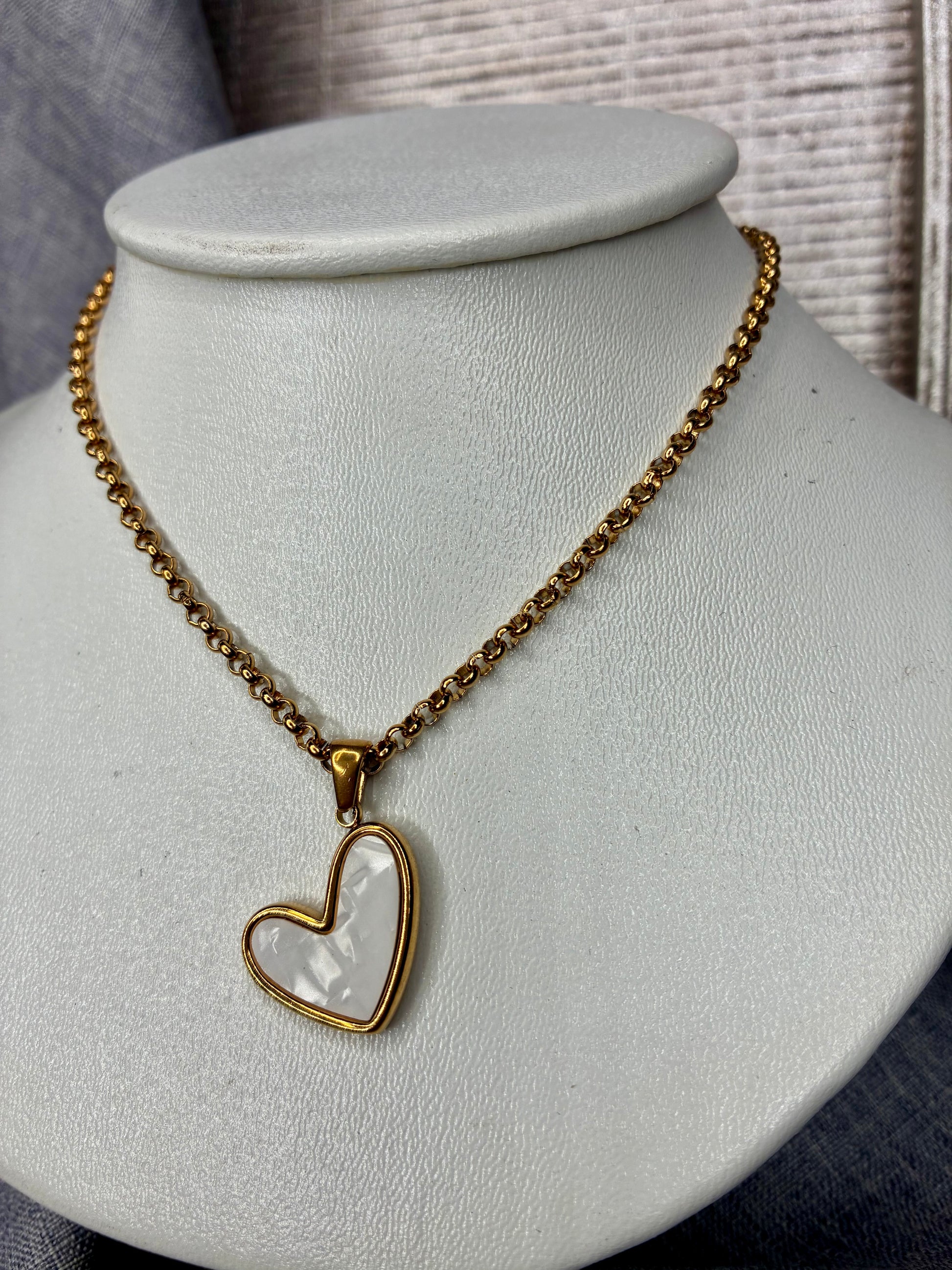 Collier chaîne dorée acier inoxydable pendentif pendentif coeur nacré